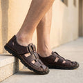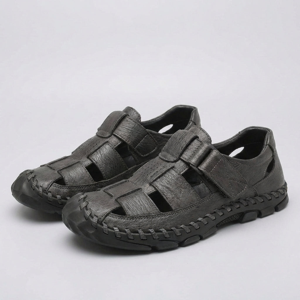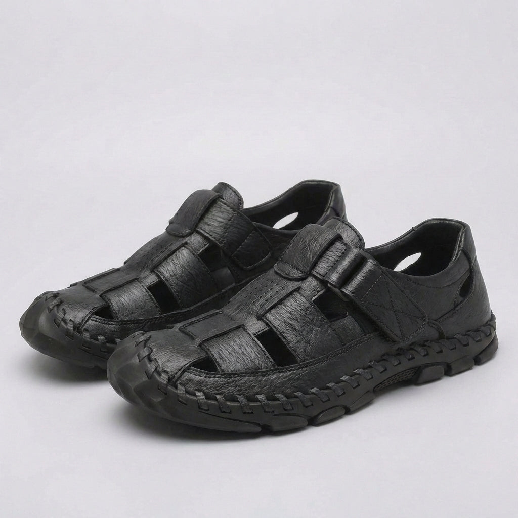 Crafted from supple leather, this Bruce Signature sandal offers a comfort fit that molds to your foot, ensuring all-day wearability. Its distinctive woven strap design, complemented by strategically placed cut-out sections, provides exceptional breathability while maintaining a chic, closed-toe silhouette. Elevate your casual daywear by pairing them with crisp linen trousers or a flowing midi dress for an impeccably polished look.