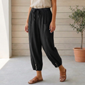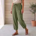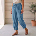 Crafted from a premium, breathable linen, these pants offer a wonderfully light and airy feel against the skin, ideal for warmer climates. Their relaxed, high-waisted silhouette drapes beautifully, culminating in subtly gathered ankle cuffs that add a touch of refined charm. Effortlessly style them with shimmering sandals and a delicate top for an elevated daytime ensemble.