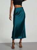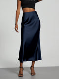 Indulge in the sumptuous elegance of the Luxe Glide Midi Slip Skirt, a wardrobe essential that effortlessly transitions from daytime sophistication to evening allure. Perfect for chic city escapades, romantic dinners, or elevating your everyday style, this skirt promises a fluid silhouette and an unparalleled sense of refined grace.