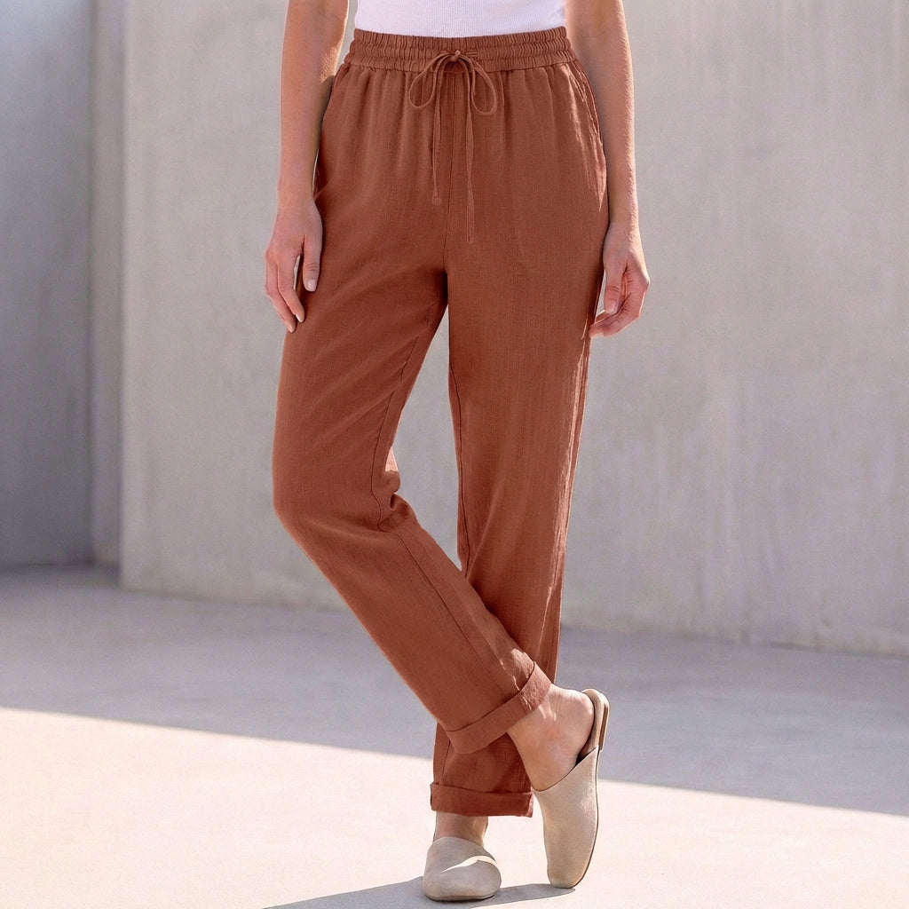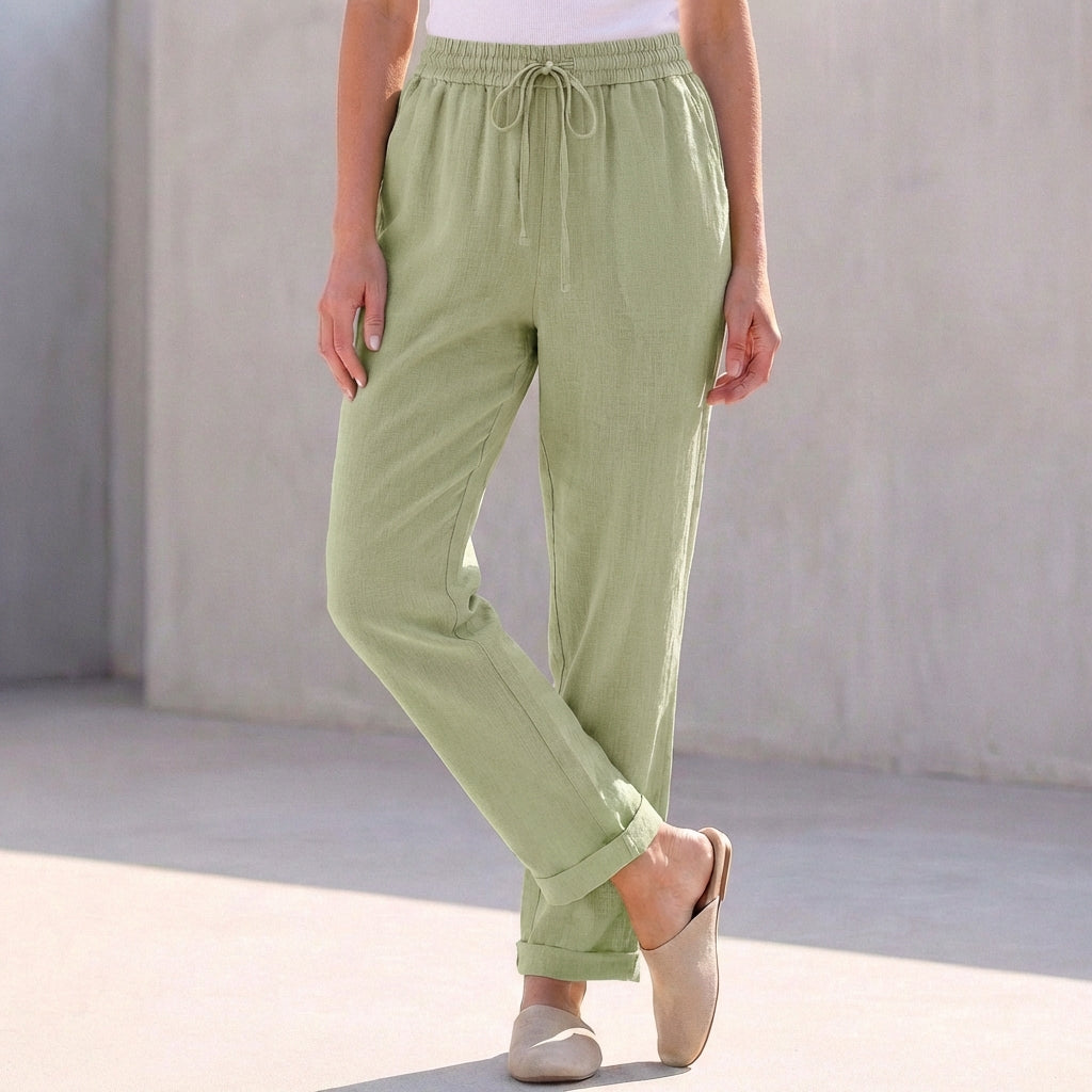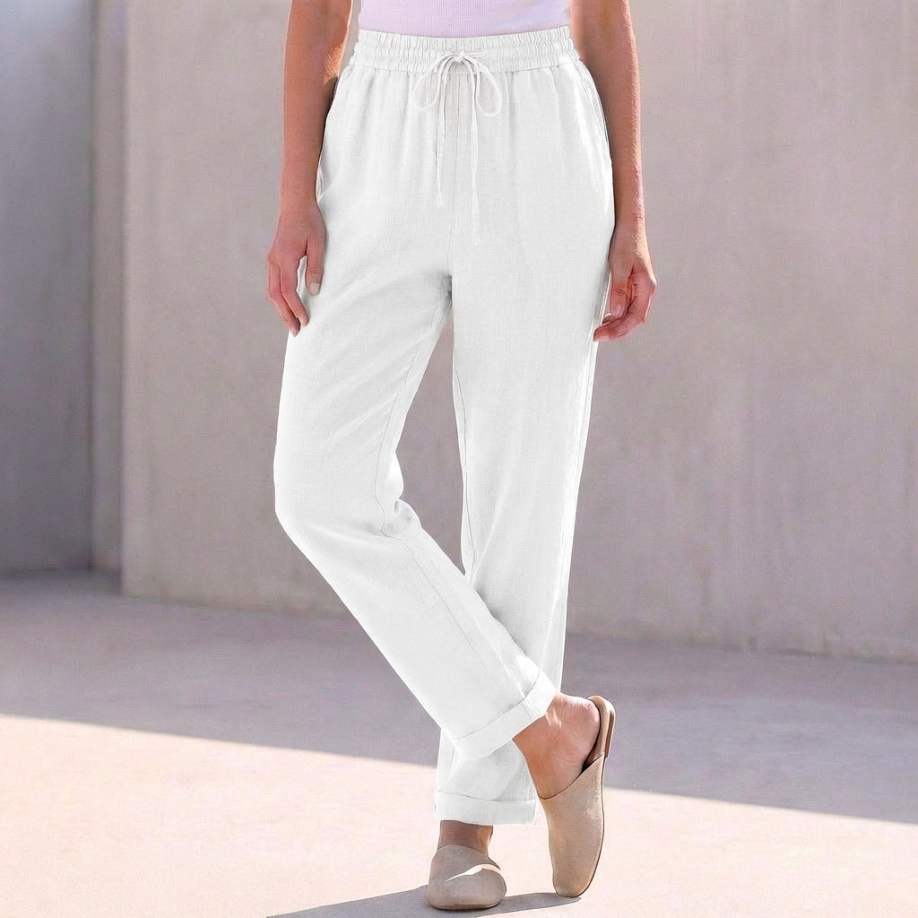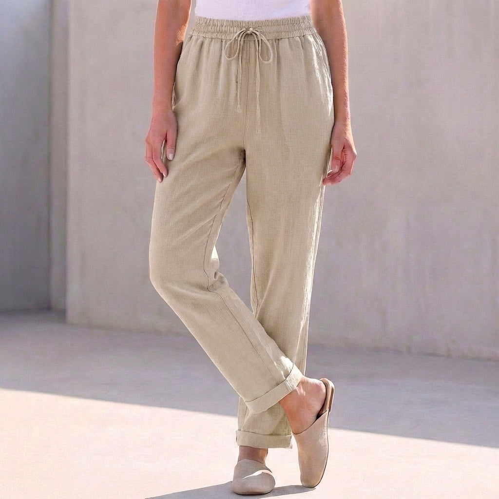 Woven from a premium cotton linen blend, these pants promise exceptional breathability and a beautifully soft drape against the skin. Their relaxed fit ensures unrestricted movement, while the ankle-length cut and subtly cuffed hems provide a contemporary silhouette. Effortlessly transition from day to evening by pairing them with shimmering sandals and a silk camisole.