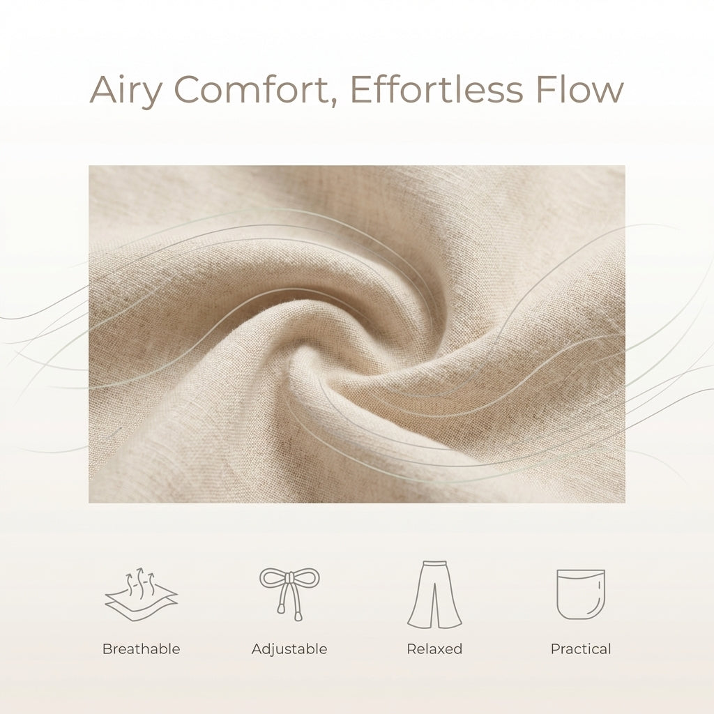 Embrace warm-weather ease with trousers designed for relaxed sophistication and everyday versatility. Perfect for leisurely strolls, casual outings, or quiet afternoons in the sun, these wide-leg trousers provide a graceful silhouette while keeping you comfortable throughout the day.