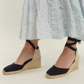 Step into the season with an air of refined ease. These exquisite wedge espadrille sandals are designed to elevate your warm-weather wardrobe, seamlessly transitioning from sun-drenched daytime adventures to elegant al fresco evenings. Embrace the spirit of sophisticated leisure, perfect for your next getaway or a chic city escape.